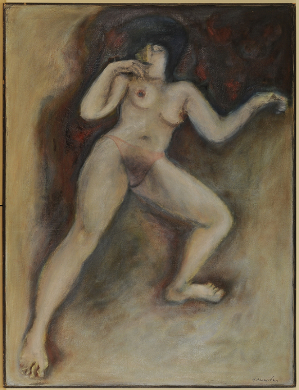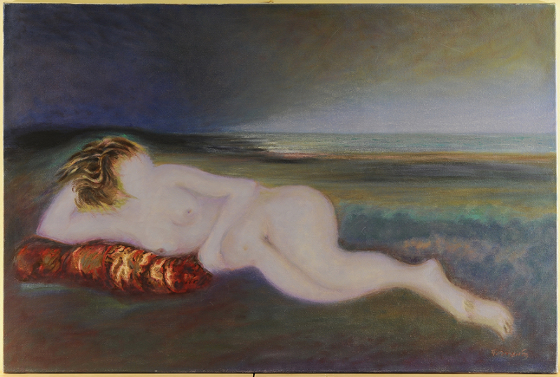 Αυτή η κίνηση της προσεγγίζουσας απομάκρυνσης, της αποκαλυπτικής απόκρυψης, είναι ο άλλος πόλος των δημιουργιών εκείνων του ζωγράφου, όπου τα γυμνά του γίνονται μέρος συνόλων, ενωμένα με ένα άλλο κορμί είτε με την φύση. Αλλά, τουλάχιστον αν βασιστώ στην δική μου υποκειμενική αίσθηση, μπορεί αυτό το ελάχιστο που σκεπάζει ένα πεσμένο μαύρο μαλλί που για μένα είναι αυλαία, να φανερώνει ακόμα περισσότερα από όσα αυτοί οι συνθετικοί πίνακες μας αφήνουν να δούμε.