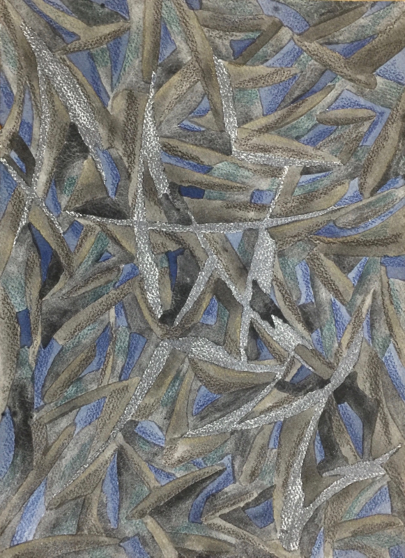 Ο Άγγελος Καλογερίας, τέλος, είναι ζωγράφος της αφαίρεσης και παρουσιάζει σχέδια και άλλα έργα που γεννήθηκαν σε μία προσπάθεια αναζήτησης και μεταφοράς των πλαστικών συμβάσεων που χρησιμοποιεί η ζωγραφική του χρωματικού πεδίου από μεγάλους ιστορικούς πίνακες στο χαρτί μικρών διαστάσεων.