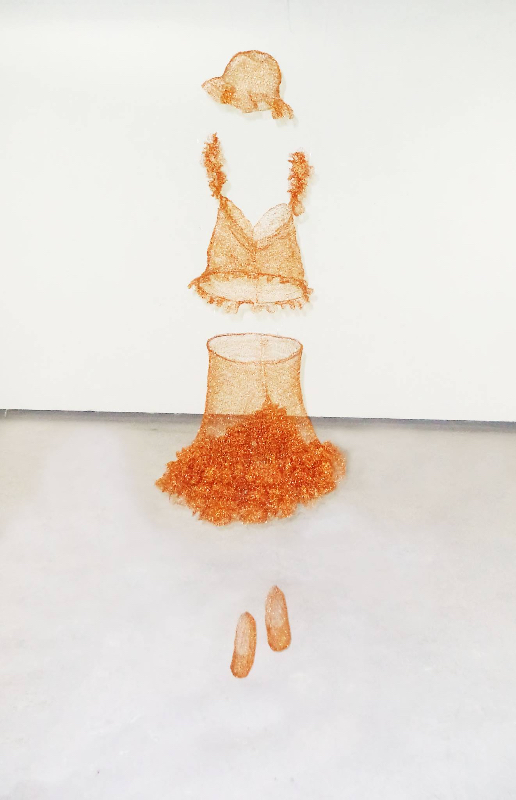 Η Μαρία Γλεζέλη ακολουθώντας μία αντίθετη, συνθετική πορεία συμπυκνώνει τη γραφή της επάνω στα γλυπτικά σύνολα που μας παρουσιάζει. Ασχολείται με το κόσμημα επαγγελματικά και χρησιμοποιεί τις τεχνικές δεξιότητες της κασμηματοποιίας και τον πλούτο των υλικών της για να προσεγγίσει την έννοια της θηλυκότητας διαχρονικά.