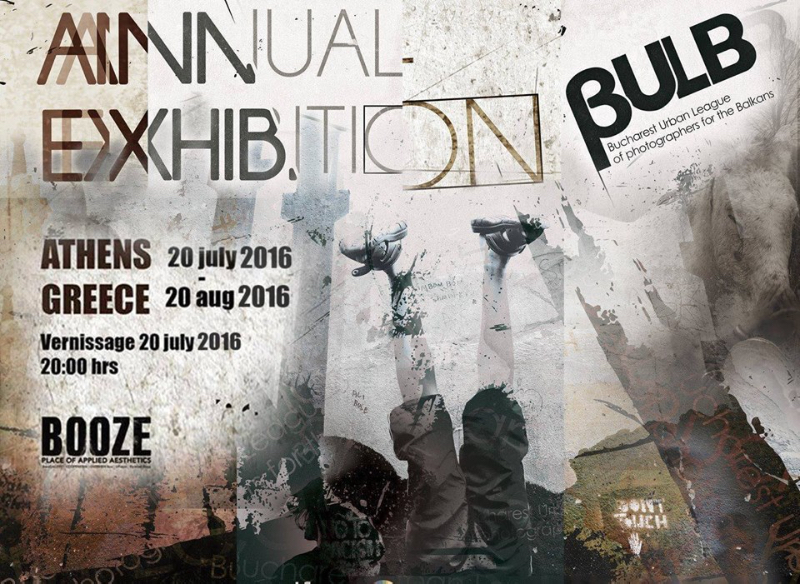 Η ΒULB (Bucharest Urban League of photographers for the Balkans) σας προσκαλεί στην ετήσια έκθεσή της που θα πραγματοποιηθεί στο Booze μεταξύ 20 Ιουλίου και 20 Αυγούστου του 2016. Οι φωτογραφίες της έκθεσης διατίθενται προς πώληση.