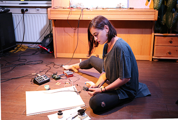 Σκίτσα από γραφίτη, σκηνικά και σώμα, χρησιμοποιούνται ως αγώγιμα υλικά και αποτελούν αναπόσπαστο μέρος ενός χειροποίητου ηλεκτρονικού κυκλώματος που μετατρέπει τον ηλεκτρισμό σε ήχο. Το σκίτσο μετατρέπεται σε μια παιχνιδιάρικη πρακτική και ο ηχητικός καμβάς σε ένα όργανο που μπορεί να επικοινωνήσει με το μουσικό ερμηνευτή.