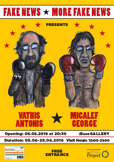 Η έκθεση Fake news, more fake news των εικαστικών Αντώνη Βάθη και Γιώργου Μικάλεφ σχολιάζει το τώρα μας. Αντιμετωπίζουν με ειρωνεία την κυριαρχία της μη ανεξάρτητης και μη έγκυρης ενημέρωσης και ερμηνεύουν με τον δικό τους ξεχωριστό τρόπο αυτό το ζοφερό κυνήγι μαγισσών που έχει ξεσπάσει. Η δυναμική της εικαστικής τους συνάντησής έγκειται στην ιδιαιτερότητα της καλλιτεχνικής τους παραγωγής. Οι καθημερινές εφημερίδες του Βάθη συναντούν τα καθημερινά σκίτσα του Μικάλεφ. Κάθε εφημερίδα και κάθε σκίτσο αποτελεί το εικαστικό έργο της ημέρας και το σατιρικό σχόλιο της επικαιρότητας. Οι εφημερίδες και τα σκίτσα είναι το συστηματικό μέσο επικοινωνίας και των δυο καλλιτεχνών με το κοινό. Η πολιτική στηλίτευση της πραγματικότητας, στα έργα του Μικάλεφ, είναι πιο άμεση, έντονη και αυστηρή ενώ ο Βάθης επιλέγει πιο ήπιες τακτικές. Μέσω ενός παιχνιδιού αναφορών, άλλοτε εμφανών και άλλοτε όχι, στην ιστορία της τέχνης ο Βάθης παρουσιάζει την δική του ματιά στα γεγονότα. Η πίστη και των δύο στη ζωή και στην ενέργεια των υλικών τους είναι ιδιάζουσα. Τα πάντα μπορούν να μεταμορφωθούν σε τέχνη. Πειραματίζονται με τα υλικά τους και μέσα από τις ιστορίες τους καταγράφουν τον κόσμο. Η εικαστική συνύπαρξη των δυο δημιουργών και η πλουραλιστική παρουσίαση των έργων τους στην συγκεκριμένη έκθεση γίνεται το βήμα για να σκεφτεί κριτικά ο καθένας μας τη θέση του απέναντι στα ιστορικά γεγονότα που βιώνουμε και να ορίσουμε εκ νέου τις αλήθειες μας.