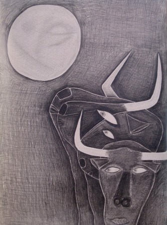 Ο Μινώταυρος γιγαντιαίος, δοξαστικός, απειλητικός μα και ταυτόχρονα αθώος σαν ένα διαστροφικό παιδικό μυαλό μας υπενθυμίζει την φράση του Λακάν: η τρέλα είναι η φύση του ανθρώπου.