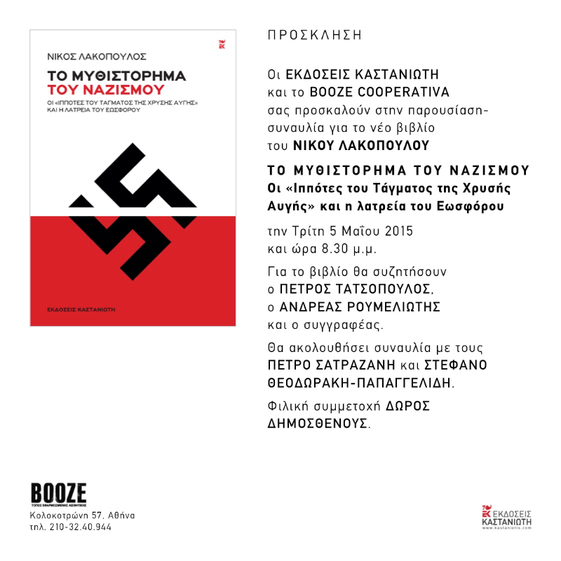 Event: Παρουσίαση Βιβλίου: Το Μυθιστόρημα του Ναζισμού του Νίκου Λακόπουλου