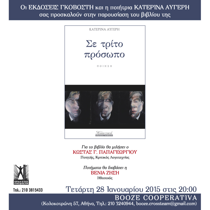 Event: ΠΑΡΟΥΣΙΑΣΗ ΒΙΒΛΙΟΥ: ΣΕ ΤΡΙΤΟ ΠΡΟΣΩΠΟ | ΚΑΤΕΡΙΝΑ ΑΥΓΕΡΗ